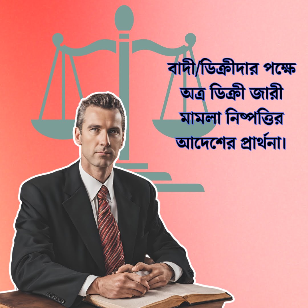 বাদী/ডিক্রীদার পক্ষে অত্র ডিক্রী জারী মামলা নিষ্পত্তির আদেশের প্রার্থনা।