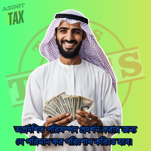 যদিও আয়কর আইন, ২০২৩ বা অন্য কোনো আইনে যা-ই উল্লেখ থাকুক না কেন, অংশ ৩ এর দফা (১) অনুযায়ী, আয়কর কর্তৃপক্ষসহ অন্য কোনো সংবিধিবদ্ধ সরকারি কর্তৃপক্ষ কোনো ব্যক্তির পরিসম্পদ অর্জনের উৎস সম্পর্কে কোনো প্রশ্ন তুলতে পারবে না, যদি সেই ব্যক্তি ১ জুলাই ২০২৪ থেকে ৩০ জুন ২০২৫ (উভয় দিনসহ) মধ্যে ২০২৪-২০২৫ করবর্ষের রিটার্ন বা সংশোধিত রিটার্ন দাখিলের পূর্বে নিম্নলিখিত সারণীতে উল্লেখিত হারে কর প্রদান করেন এবং রিটার্নে সেই অপ্রদর্শিত পরিসম্পদ প্রদর্শন করেন।, যথা:-