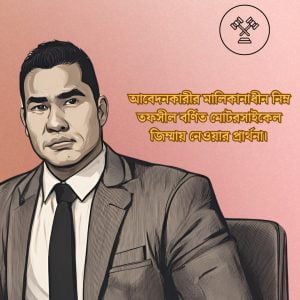 বিষয়ঃ আবেদনকারীর মালিকানাধীন নিম্ন তফসীল বর্ণিত মোটরসাইকেল জিম্মায় নেওয়ার প্রার্থনা।