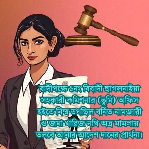 বাদীপক্ষে ১নং বিবাদী ছাগলনাইয়া সহকারী কমিশনার (ভূমি) অফিস হইতে নিম্ম তপছিল বর্নিত নামজারী ও জমাখারিজ নথি অত্র মামলায় তলবে আনার আদেশ দানের প্রার্থনা।