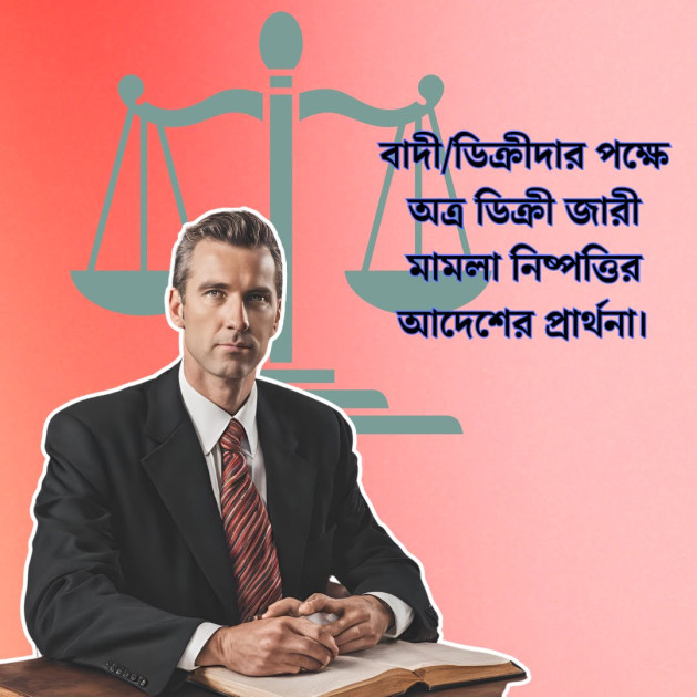 অতএব, উপরোক্ত অবস্থা ও কারণাধীনে বাদী/ডিক্রীদার পক্ষ বিনীত ভাবে প্রার্থনা করেন যে অত্র ডিক্রী জারী মামলা নিষ্পত্তির আদেশ দানে বাধিত করার মর্জি হয়।