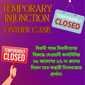 ১৪ নং বিবাদী পক্ষে ১-৪ নং বিবাদীর বিরুদ্ধে দেওয়ানী কার্য্যবিধির ৩৯ আদেশের ১/২ নং রুলের বিধান মতে অস্থায়ী নিষেধাজ্ঞার প্রার্থনা।