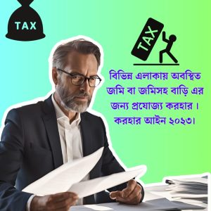 তবে শর্ত থাকে যে, যদি জমিতে কোনো স্থাপনা, বাড়ি ফ্লাট, অয়াপার্টমেন্ট অথবা ফ্লোর স্পেস থাকে তবে, প্রতি বর্গ মিটারে আটশত টাকা হারে অথবা ঐ স্থাপনা, বাড়ি, ফ্লাট, অ্যাপার্টমেন্ট অথবা ফ্লোর স্পেস এর দলিল মুল্যের ৮% (আট শতাংশ) এর মধ্যে যাহা সর্বোচ্চ সেই হারে অতিরিক্ত কর প্রযোজ্য হবে :