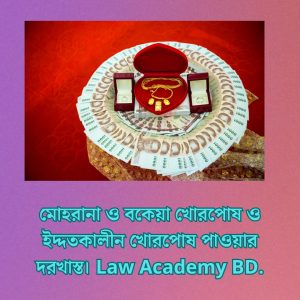 মোহরানা ও বকেয়া খোরপোষ ও ইদ্দতকালীন খোরপোষ পাওয়ার আবেদন।