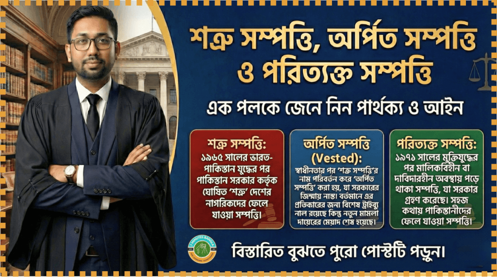 বাংলাদেশে পারিবারিক বা দেওয়ানি বিষয়গুলো (বিয়ে, তালাক, উত্তরাধিকার) মূলত যার যার ধর্মীয় আইন বা ‘পার্সোনাল ল’ (Personal Law) অনুযায়ী পরিচালিত হয়। তাই হিন্দু এবং মুসলিম নারীদের সম্পত্তির অধিকারে বড় ধরনের পার্থক্য দেখা যায়।নিচে বাংলাদেশে প্রচলিত হিন্দু দায়াভাগ আইন এবং মুসলিম পারিবারিক আইন অনুযায়ী কন্যাদের সম্পত্তির উত্তরাধিকার নিয়ে বিস্তারিত আলোচনা এবং তুলনামূলক বিশ্লেষণ দেওয়া হলো।১. হিন্দু […]